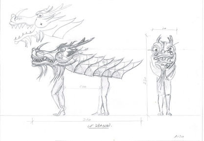 LA FLÛTE ENCHANTÉE de Mozart, réalisation de la marionnette du DRAGON, mise en scène et costumes de Éric Vigié. Opéra créé le 15 mars 2024 à l’Opéra de Lausanne.